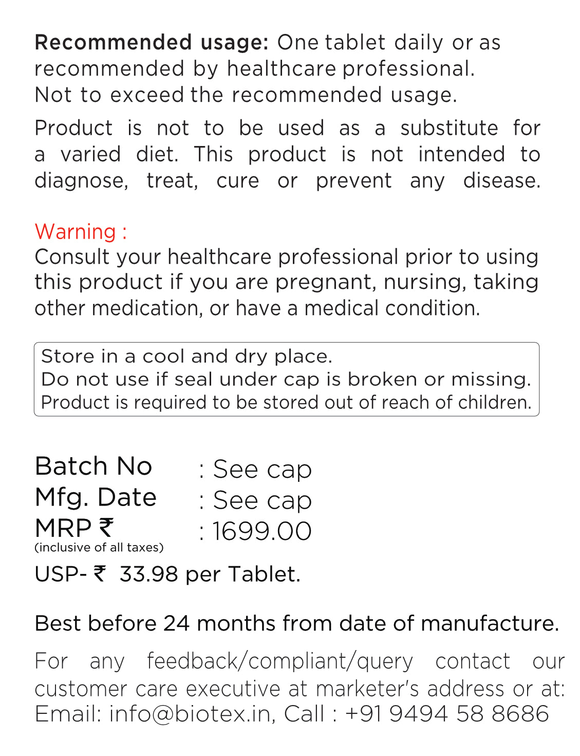 All Nutraceuticals, Dietary and Health Supplements of BIOTEX are approved by the Food Safety and Standards Authority of India (FSSAI)/ department of AYUSH and formulated based on clinically validated research.