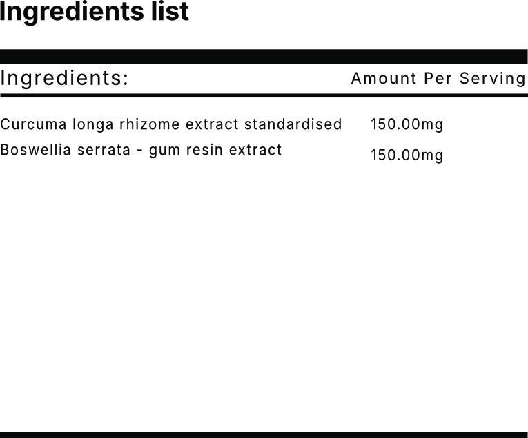 Explore the combined potential of BOSWELLIA SERRATA and CURCUMIN, two herbal extracts known for their properties, in a convenient capsule form. This blend focuses on supporting joint health and contributing to the body's natural inflammatory response. BOSWELLIA SERRATA, together with CURCUMIN, which is also recognized for its properties, offers a holistic approach to wellness. The ingredients in this supplement are selected for their qualities, which include supporting the body's defense against free radicals and contributing to overall joint comfort. While they may assist in managing general wellbeing, including joint and knee comfort, and contribute to overall health, it's important to remember that results can vary. This supplement is a part of a balanced approach to health and well-being.