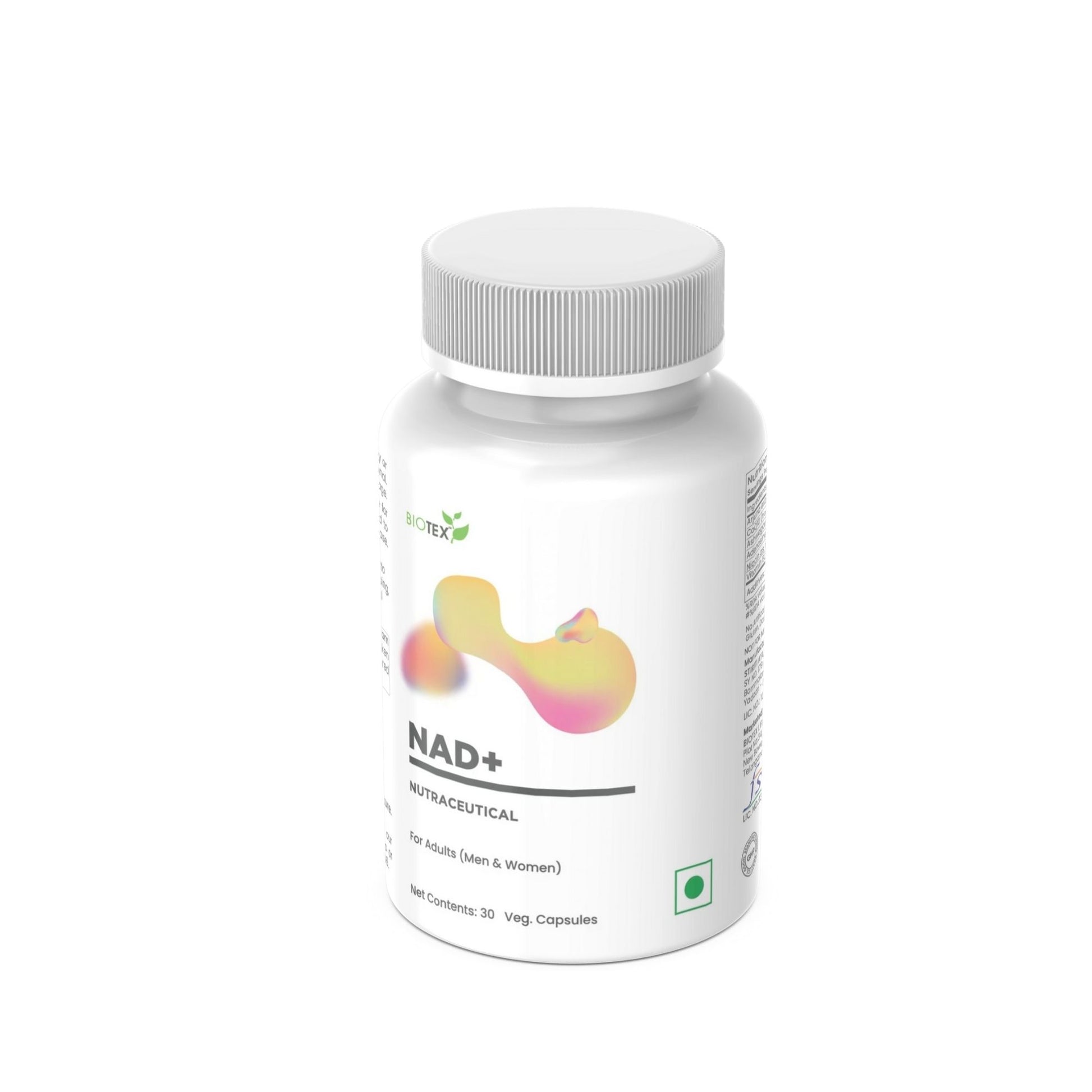 NAD+ combines CoQ10, Ashwagandha, Arjuna, Niacinamide (Vitamin B3), and