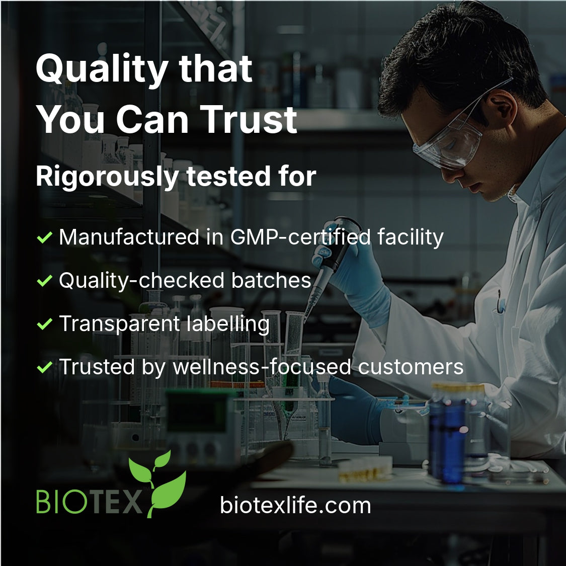 All Nutraceuticals, Dietary and Health Supplements of BIOTEX are approved by the Food Safety and Standards Authority of India (FSSAI)/ department of AYUSH and formulated based on clinically validated research.