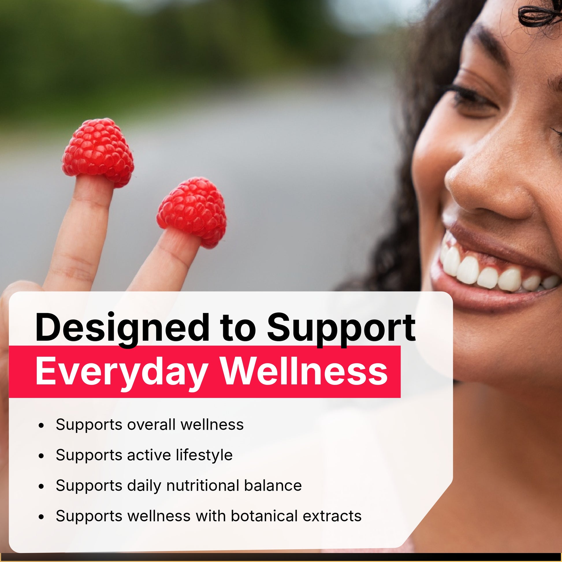 - Boosts Energy & Focus: Green Tea and Raspberry Extracts help increase natural energy levels and alertness.